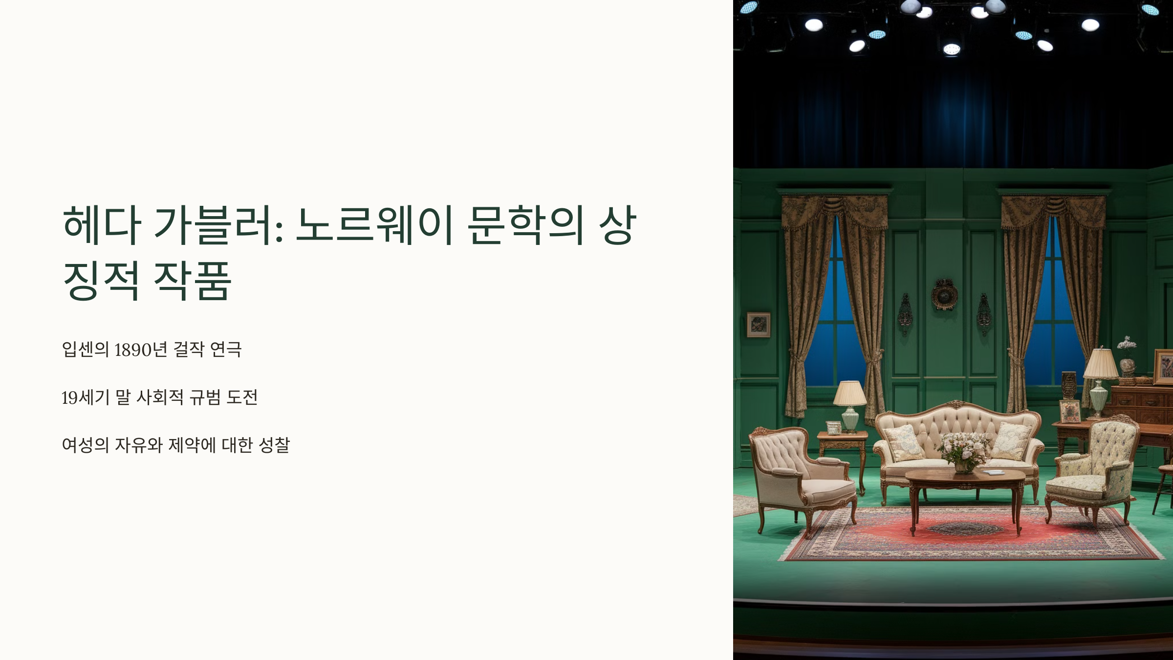‘ํค๋ค ๊ฐ๋ธ๋ฌ’๋ ๋ ธ๋ฅด์จ์ด ๊ทน์๊ฐ ํจ๋ฆฌํฌ ์ ์ผ์ด 1890๋ ์ ๋ฐํํ ์ฌ๋ฆฌ๊ทน์ผ๋ก, ์ฌ์ฑ์ ์ต์๋ ์๋ง๊ณผ ์ฌํ์ ๊ตฌ์กฐ์ ๋ํ ๋นํ์ด ๋ด๊ธด ์ํ์ ๋๋ค. ๋น์์๋ ํ๊ฒฉ์ ์ผ ๋งํผ ์ฃผ์ฒด์ ์ธ ์ฌ์ฑ ์บ๋ฆญํฐ๊ฐ ๋ฑ์ฅํด ๋ ผ๋๊ณผ ์ฃผ๋ชฉ์ ๋์์ ๋ฐ์๊ณ , ์ง๊ธ๋ ‘์ ์ผ์ ์ฌ์ฑ ์ฃผ์ธ๊ณต’์ ๋ํ ์ฌ๋ก๋ก ๊ผฝํ๋๋ค. ์ ์ผ์ ์ด ์ํ์ ํตํด ๋น์ ์ ๋ฝ ์ค์ฐ์ธต ์ฌํ์ ์์ ๊ณผ ์ฑ ์ญํ ์ ๋ํ ์ง๋ฌธ์ ๋์ก์ฃ .