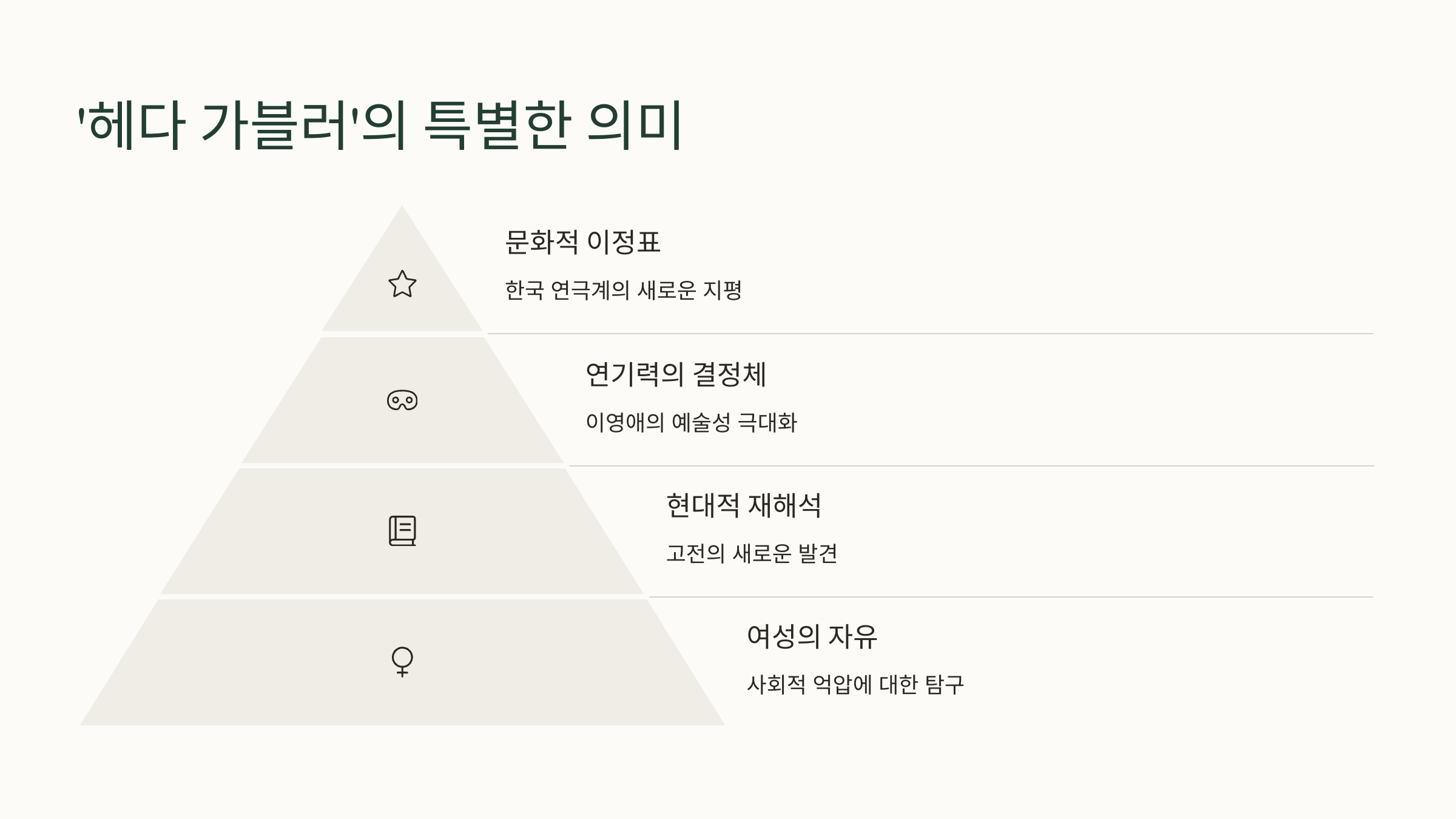 ‘ํค๋ค ๊ฐ๋ธ๋ฌ’๋ ๋ ธ๋ฅด์จ์ด ๊ทน์๊ฐ ํจ๋ฆฌํฌ ์ ์ผ์ด 1890๋ ์ ๋ฐํํ ํฌ๊ณก์ผ๋ก, ์ฌ๋ฆฌ๊ทน์ ์ ํ์ผ๋ก ํ๊ฐ๋ฐ๊ณ ์์ต๋๋ค. ์ฃผ์ธ๊ณต ํค๋ค๋ ์ฌํ์ ๊ธฐ๋์ ๊ฐ์ธ์ ์๋ง ์ฌ์ด์์ ๊ฐ๋ฑํ๋ฉฐ ๊ทน์ ์ธ ์ ํ์ ํ๊ฒ ๋ฉ๋๋ค. ์ ์ผ์ ์ด ์ํ์ ํตํด ๋น์ ์ฌ์ฑ์ ์ต์๋ ์ถ๊ณผ ๋ด๋ฉด์ ๊ฐ๋ฑ์ ์ฌ์ค์ ์ผ๋ก ๊ทธ๋ ค๋์ต๋๋ค. ๐ค
